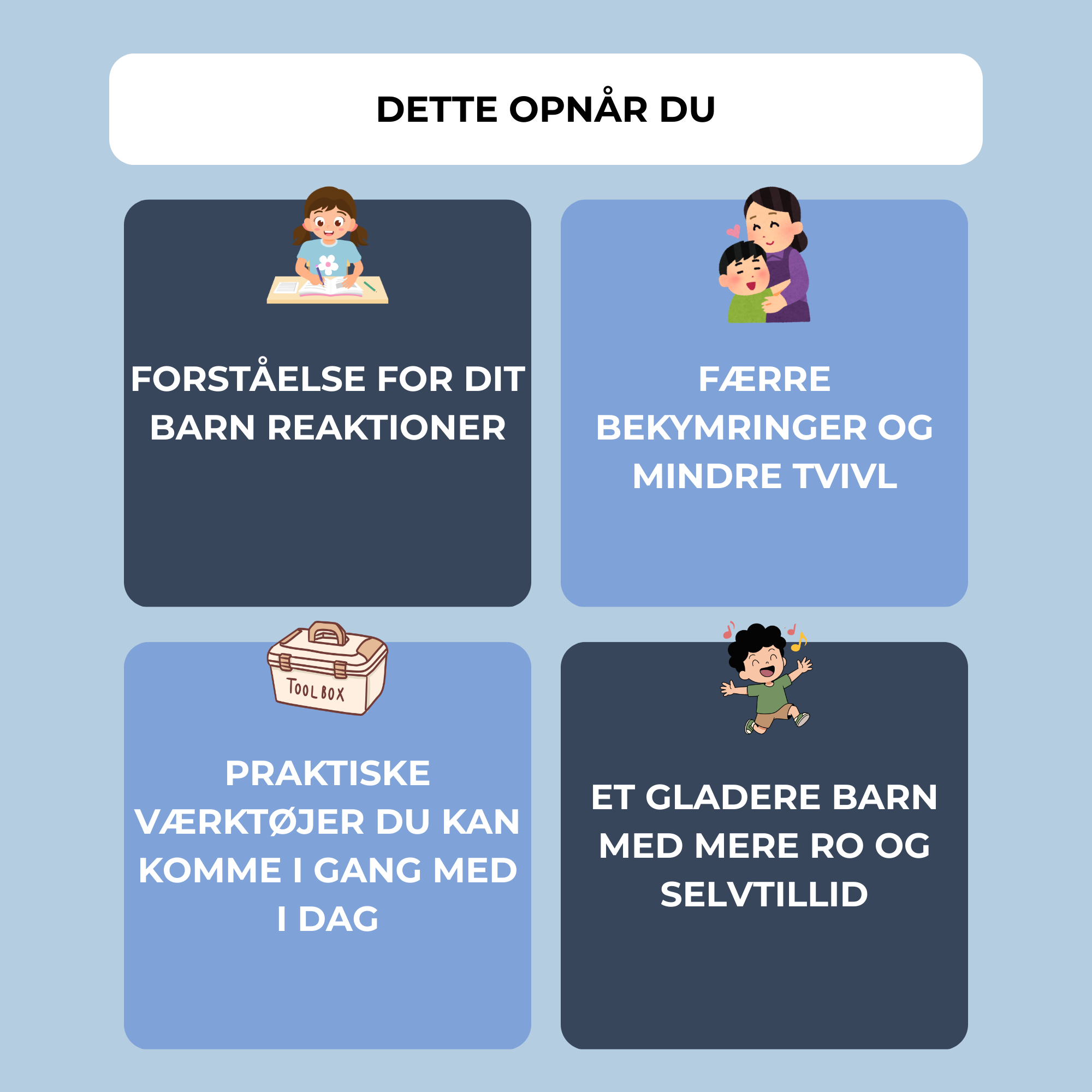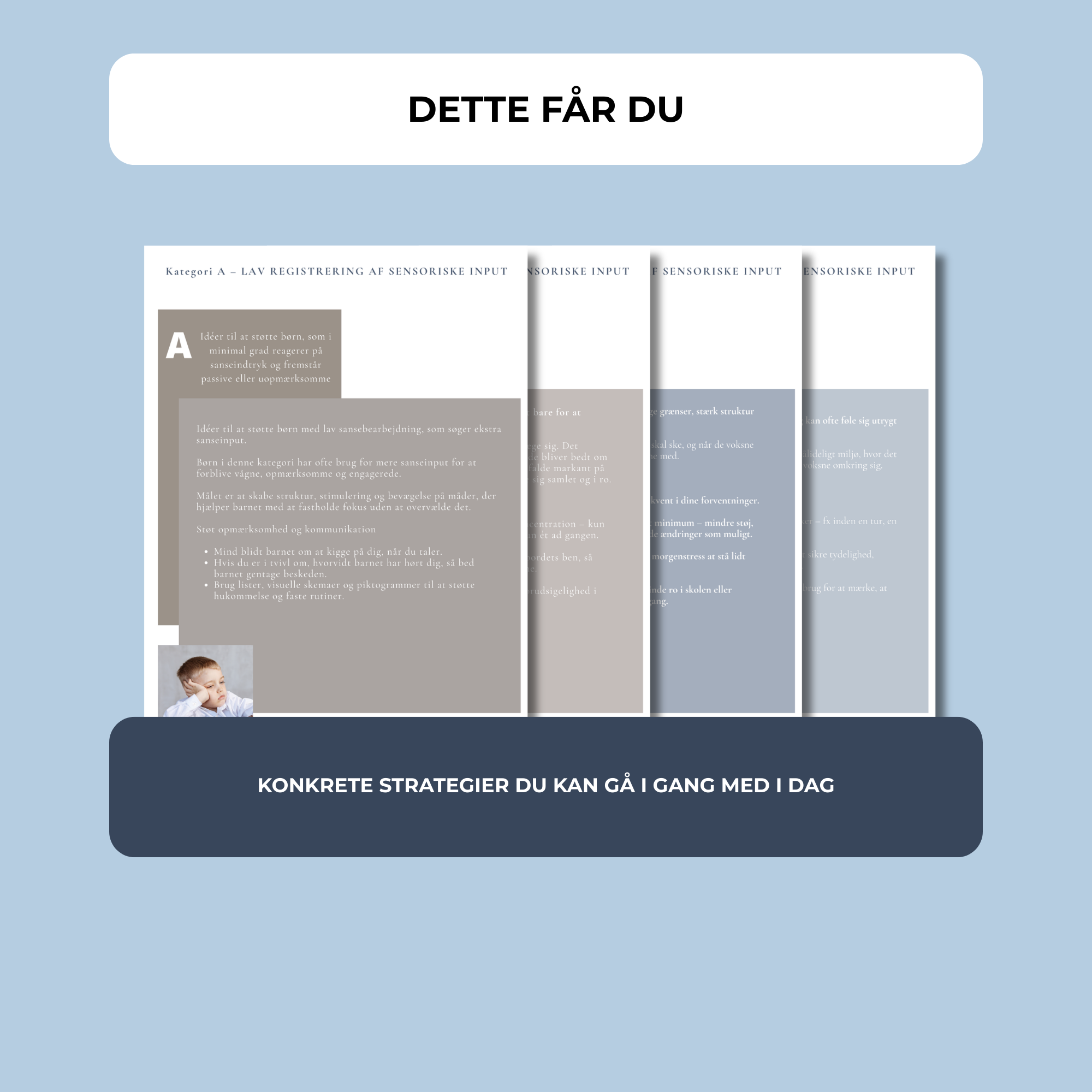 Når du er færdig med guiden, kan du ret sikkert spotte dit barn, og straks gå i gang med at skabe rammer omkring barnet, der øger tryghed, indlæring og koncentration.