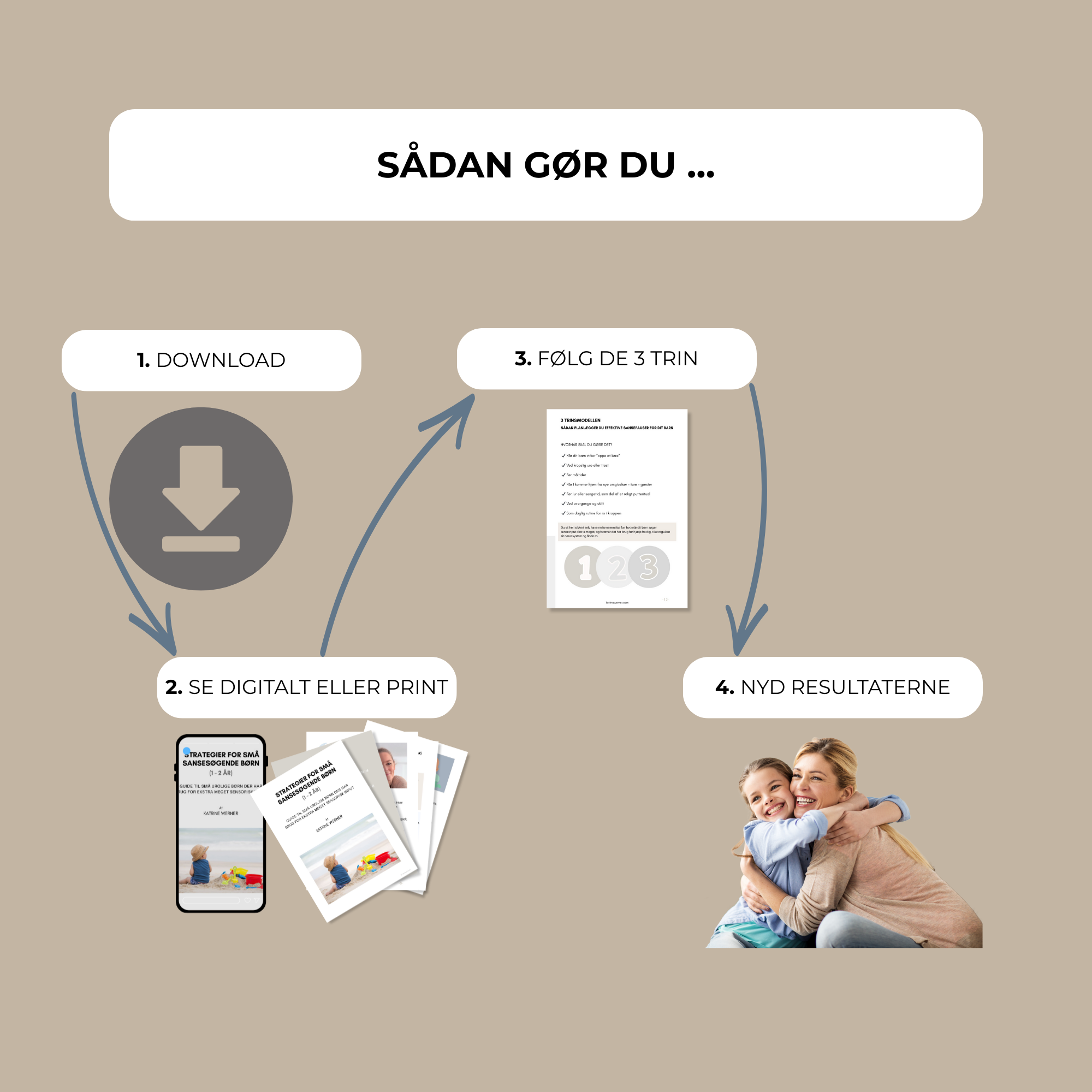 ✓ Du får et visuelt skema til at planlægge sansepauser i hverdagen med 3-trinsmodellen